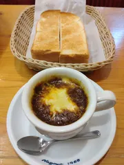 から... 皆さんの投稿を拝見していて気になっていたメニュー😌今日初めて注文してみました~トーストは厚切りを選択😄想像以上に辛かったですが、とても美味しかったです!冷えた体が食べ終わる頃にはポカポカしてきました。 モーニングは、おぐらあん&いちごジャムで甘甘にしてバランスを取りました(笑)