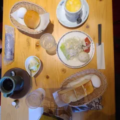 いつものモーニング☕️🍞🥗 おはようございます🐱今にも降り出しそうです☔️三連休中日、次々とお客さん来店、なかなかの賑わいです🙂 みなさま、熱中症に気を付けて、よき日をお過ごし下さいね😊