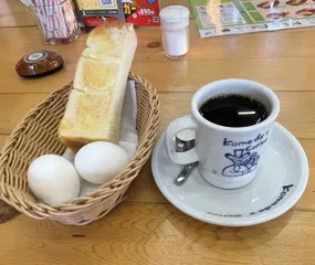 おはコメでございまーす^ ^ メニュー名:定番ゆで玉子モーニング 山食パン バター/コメダブレンド/おかわりコメダ特製おぐらあんおすすめ度:★★★★★/5個中定番度:★★★★★/5個中おはようございます☀今日もコメダで朝活〜最高でーす