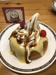 こうぱんさん😊こんばんは♪♪♪ ちいかわむちゃうま🌸シロノワールのソースが、たっぷり、かかってました🌸最後はソフトクリーム🍦とソースを絡めて 頂きました♪♪♪プリン🍮とソフトクリーム🍦は合いますね🌸 こうぱんさん😊も是非、食された時は投稿、宜しくお願いします🌸こうぱんさん😊何時も嬉しい、コメント、あ