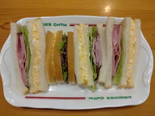 お腹いっぱい大満足 今日は少し肌寒いですね😞雨が降る中、一週間の疲れを癒やしにマイコメへ😄久し振りにペッパーポークとたまごの具沢山サンドでエネルギーチャージ✌️本当に具沢山だなぁ😁モーニングは大好きなおぐらあんを選択!糖分もしっかり摂取😜 この後はウォーキングに行きたいけどお天気はどうなるかな?