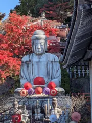 壷阪寺の大仏 【幸せエピソード】大仏様と和傘と紅葉