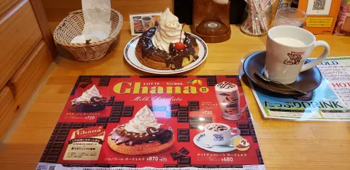 児玉店(名古屋市)駐車場あり店舗前にはガーナ全種類終了のPOP鶏タツタの張り紙は 無い!メニューも鶏タツタシールが貼ったまま♪ ローブパンB+アイスコーヒーまずはモーニングをモバイルオーダーで注文♪後で鶏タツタ食べるので今日はローブパンバターしみしみ👍 そしてモバイルオーダーで鶏