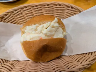 セルフカスタム(≧∇≦) モーニングの卵ペーストをサラダに、サラダのイモサラダをパンに挟んでいただく