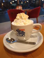 可愛いホワイト白🤍🤍🤍 メニュー名:ホワイトカフェショコラおすすめ度:★★★★/4個中甘さ度:★★★★★/5個中コメント:まずは美味しかった〜🩷 甘いだろうと覚悟していたが… 違った!甘さ控えめで👍👍👍 ただ…ぬるかった💦 熱々だったら満点💯 あと、モリモリで混ぜるのに… 要