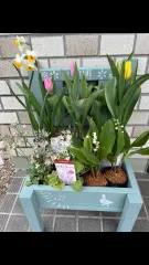 3月3日のお雛様の日は2回目の結婚記念日 先日作ったガーデンチェアプランターにお花を置いて玄関先で少し華やかに演出してみました😊 帰って来て、お花綺麗だったと嬉しそうでした🤭