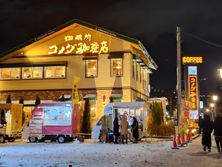 函館のコメダ 念願の函館💖やっと来られました、函館✨まずはトラピスチヌ修道院から観光スタート修道院内には入れないけど、お土産とかは買えます。ソフトがめっちゃ濃くて美味しかったです🎵そして、五稜郭。ライトアップで綺麗だったけど、雪がやまず🌨️人も多く、やっと撮れた画像です。