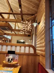 今朝もモーニングを食べに来ました☕🍞🌄席に着いて注文をしスマホを触りさて、食べようかなぁとふと、目線を上にしたら あら、素敵✨桜が…🌸 周りをざっと見回しましたが なぜかここの席だけに🤭でも、なぜだか桜を見てると温かい気持ちになりました🌸