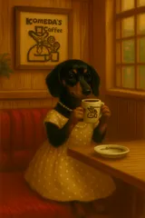 ホット珈琲 我が娘がコメダでコーヒーを飲んでいるのを イメージして作りました。 親バカですが可愛い😍。 いつかペットとコメダ珈琲店に来店したいです。