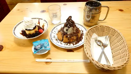 ショコラノワールは“季節のシロノワール”って事で良いんでしょうか❔安定のウマ~ベラスでございます😺珈琲所のプリンにはホットアメリカンで合わせました☕これでドリンク無料券は丁度7枚目で打ち止めになりました😀🎫