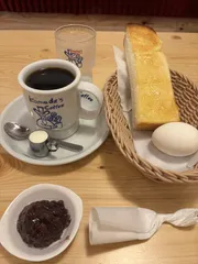 おはコメでございます^ ^ メニュー名:定番ゆで玉子トーストモーニング/コメダブレンド/おかわりおぐらあんおすすめ度:★★★★★/5個中安定度:★★★★★/5個中おはようございます☀今日も安定の定番ゆでたまごモーニングをいただいています。すっかり常連となっております。座る席も朝イチの時は決めていています^ ^朝から食パンにバタ