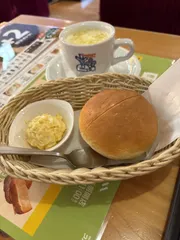 コーンスープおいしいですわよね😋 私のモーニングはコーンスープかコーヒー1.5倍か紅茶のみずきでその日の気分で選んでいます。先日はコーンスープにしました
