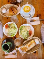ソイラテ子さんおはようございます😃 お友達と🌽☕️モーニング🥚🍞🥯🥗美味しそうだぎゃー🤤✨ ほな、行ってらっしゃ〜い👋