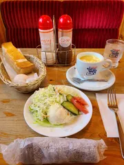HIRO さん、こんばんは😃。 いつもとは反対側の隅っこソファー席も意外と居心地が良かったです❣️ 景色が違うところでいただくいつもの定番モーニング、凄く美味しいです😋。 くつろぎ始めたらあまりにも居心地が良かったので、モーニングタイムぎりぎりでおかわり🎶しました😁💕。 いちごジャム🍓トースト🍞の後