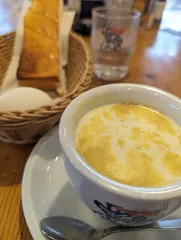 モーニングAのトーストよく焼きをコーンスープにどーん!さくさくのトーストが少し柔らかくなって フフッ美味しかったです♫