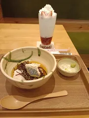 昨日はコメダ、今日はおかげ庵🎵 期間限定の苺🍓づくしフェア開催中と知り、モーニング時間帯に来店しました!苺、抹茶の風味、ミルク、わらび餅、どれも最高でした!