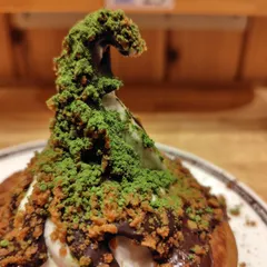 みいこさん、こんにちは😃。 あ"〜〜っ、みいこさんすみません🙇 ドデカチーズメンチバーガー🍔はお揃いだったけど、飲み物は紅茶☕️は紅茶でも私はお伊勢さんの和紅茶瑞でした〜😱💦💦💦 失礼いたしました〜💦 昨日の感動が忘れられず今日もブラックモンブランパフェを仕事前にいただいています😊🎶 今日も素敵💓な