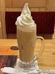 コーンさん、こんにちは😃。 コメダ珈琲店に通い始めてから、クリームオーレはまだ数えるくらいしか頼んでなかったので、懐かしい感じでいただきました💝✨。 今の季節ならソフトクリームは後半に食べても大丈夫かと思ったら、すぐに溶けてきてしまって、慌ててソフトクリームだけ先に食べました😅💦 出勤前の朝食だった