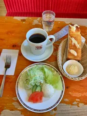 ちまんずさん、おはようございます😃 いつものモーニング☕️🟡🍞🥗美味しそうだぎゃー🤤✨ 祝日のコメダタイム完璧👍