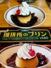 コメダ本店に行きました 店舗限定のプリン。見るからに、昭和プリンの姿。カラメルの厚みにニヤける。ゼリーではなく、コメダジェリーが周りを囲む。硬めよりでヒンヤリしてるのが特徴。本店、葵店の直営店だと初めて見るメニューに出会えるかもしれないそうです。コメダって何回行っても飽きない。