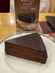 自分にご褒美💖アプリコットショコラ 2連休の2日目。ずっと欲しくてもGET 出来なかったクレーンゲームで今日遂に念願叶ってお持ち帰り出来ました🎶✨(((o(*゚▽゚*)o)))❤️✨。手に汗握って頑張った自分にご褒美があげたくて、コメダ珈琲店でデザートセット❣️カフェオーレとアプリコットショコラをいただきました😊🎶嬉しさのあまり断面は