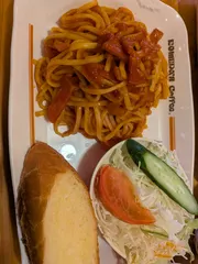 ナポリタン サラダがついていてうれしかったです。麺が軟らかいんですけど、味付けいいですね。おいしかったです