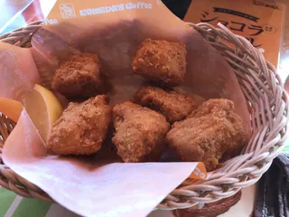 寒い〜☀️いつものマイコメダに!少し早い時間いつもより😅 モーニング時間帯はやはり混み合ってますね😅日曜日だし余計に、、、待って、カウンター席です😅写真がうまく撮れず、、、元から下手だけど😅 むしょうに、、、コメチキが食べたくて、、、コメチキ🍗😋 あっ🤭旨い😋ジュウシ〜🍗モーニング時間帯な