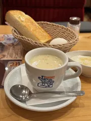 皆様こんばんは🌃 昨日お出かけの乗り換え駅近くでモーニング休日によく行くお店なのですが、入口にモバイルオーダーのスタンプキャンペーンを行っていない旨掲示してあり、ちょっと残念😢 前回は行っていたのですが… 休日の昼間は何十組と順番待ちしてる人気店だからかな コーンスープ🌽がリニュ