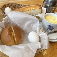 コーンさん、こんにちは✨ ご家族でモーニング、良いですね😊 ローブパンの切れ目から見える、溶けかけのバターが良き👍✨ 一発目でピカチュウを当てるなんて、今日も良い日になりそうですね♬