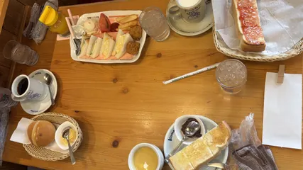 オ・モ・テ・ナ・シ 今日は、娘のタイのぁ友達家族が来日するというので、娘の日本のお友達と一緒に空港へお出迎え。ビックアップ後、コメダでモーニング。並びの4人席が空いていて良かった。8人分のモバイルオーダーを入力するのは、大変でした。 その後、イオンモールでお買い物。 お昼は、やきもの散歩道のお蕎麦屋