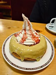 皆さんこんにちは😊ピスタチオシロノワールミニにする筈がモバイルオーダーミスで大きいの頼んでしまいました😭😭でもそびえ立つソフトクリームやベリーソースが美味しくてペロリと食べてしまいました😅😅体重計に乗るのが怖〜い🤣🤣