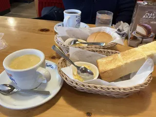 NEW 本日二軒目🥰 マイコメでジェリコモーニングしましたが、お気に入りの家具屋さんの初売りの帰りにチケット🎫持ってないコメダに寄りました🥰 モーニングギリギリ間に合ったのでコーンスープ山食パンBモーニングでランチがわり。スタンプチケットでお会計ゼロ円🧾体暖まりました😍