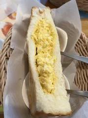 いつだったか、以前山食パンにたまごペーストを挟んだらちょっと足りないと思ったので、今回おとクーポンを使ってもう一つたまごペーストを追加してみました❣️少し増えたので見栄えが良いですね😄こめ黒と一緒に頂きました😋