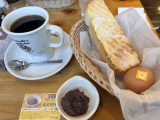 コーンさん、こんばんは😃。 朝から一働きした後のモーニングはとっても美味しくて、お腹も空いていたのでお代わり山食パン🍞、いちごジャムでいただきました☺️🎶。 バターといちごジャム、ダブルの美味しさがクセになりそうです😅💦 2日連続細長ゆでたまご🥚さん、タダさんが命名してくださったので🥚友蔵さんって呼
