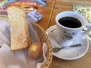 久しぶりのモーニング❗️ こんにちは❗️1週間病み上がりの週末は混んでますのでモーニングをやめて本日解禁😅久しぶりの美味しいモーニングに山食パンとゆでたまご コメ黒珈琲タップリぬる豆乳👌豆シールを貰って 美味しいグラクロ求めて行きましたが10:30モーニング頂けましたのでグラクロの2種 海老薫るトマトソースと通常の