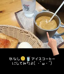 NEW 氷なし★アイスコーヒー注文 モバイルオーダーからモーニングを注文。 いつもは気づかなかったけれど、「氷なし」が選択できたのでチェックを入れてオーダーしてみました(*^_^*) ホットまではいかなくても、冷え冷え度が下がって秋には飲みやすいかも。