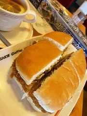 今日はちょっとブチ切れ状態の私ですだから、モーニングの後にブチ切れ怒り💢のミソカツパン食べました😂食べきれないだろうと店員さんがアルミホイル持ってきてくれましたが完食🙌私凄いわこれが私の食の道🤣 ちょっと機嫌が治りました単純です😂