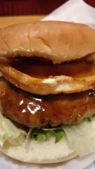 明るい場所で 昨夜はいつものコメダ珈琲店まで、月見に行きました。まずはごはんから、コーンスープとフルムーンバーガーを。スープは適温で、バーガーばかりでは堪えるごとにひと呼吸を置かせてくれました。喫茶店文化では、そのように交互に食べ進めることができるのがいいですね。バーガーは、全部が重なった真ん中にかぶりついたとき