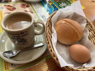 今日のモーニングは 今日は、家族と一緒にモーニングに‼️こちらのお店は、コメ黒がないので以前飲んでいたカフェオレを飲みました☕️何処のお店でも同じ美味しさですね❣️バターではなかったので、次はイチゴ🍓ジャムにしようかな😄
