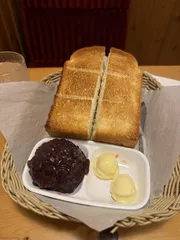 今日コメ☆ 今日はなんだか... よく焼き厚切りに変えてもらった小倉トーストにいたしました🍞クリームコーヒーは残念!特盛ソフトではなかったです🤭