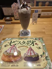 出遅れ、時差投稿で恐縮です すっかり秋から初冬を感じる季節になってしまいましたが遅ればせながら最近いただいた期間限定メニューたちを....お月見シロノお月見クロネージュお月見ジェリコお月見フルムーンバーガー。奥には遠近法でポテチキとでらたっぷりアイスコーヒー。デラたっぷりなのは、食後にデザートでお月見シロノをいただくつもりだっ