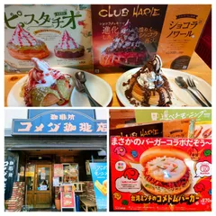 ピスタチオルージュ&ショコラを同時に味わう!!💚🩷🤎😋 届け物が有って名古屋まで。無事に用事を済ませて、帰り道、最寄 のお初のコメダへ。住宅街のコメダ。駐車場は店の前に3台!?🚗🚙 入ってみると、なんと!!ピスタチオルージュとショコラノワールの案内写真が有りました!😳念のため、店員さんに確認すると「 はい、両方ご用意できます」だそう😍