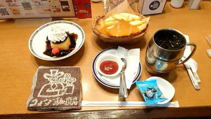 数時間前迄おなかすいたさんが居た大須大津通店に仕事後のくつろぎに来ました😺本日も寒いのですが喉がカラカラなのでスカッとするものが欲しくてこれらを選びました😀伏せ字の正解レモンスカッシュです🍹🍋左側後ろ右側真上底 コメダでは初めての注文レモン味が濃くてサッパリしてますね~🍋🍒 &n