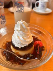 メニュー名:珈琲所のプリンおすすめ度:★★★★★/5個中ハードボイル度:★★★★★/5個中コメント:ハードボイルドな固いプリンが好きな私にとっては嬉しい新メニューです。盛り付けられたホイップや添えられたチェリー、コーヒーゼリーもあるので最後まで飽きない美味しさです。ソフトクリームではなくホイップなの