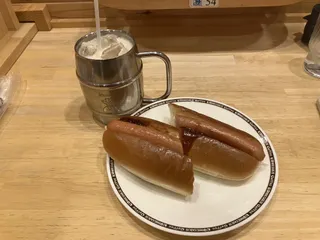 こんばんは。今日のランチはよく焼きホットドッグと熱々コーンスープでした!(コーンスープは既に半分くらい飲んでしまって写真無し🫣)ホットドッグも熱々&断面サクッと、ソーセージがパキッとジューシーで美味しかったー😋お店は混雑していましたが、優しい店員さんがよく焼き&熱々にしてくださっていて、とても嬉しか