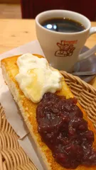 ヨーグルトおぐらあん✨ モーニング☕はちみつかかったヨーグルトもたまらない😋秋のくつろぎアプリクーポンでたっぷりサイズ珈琲☕ こんがりトースト🍞 ご馳走様でした😋