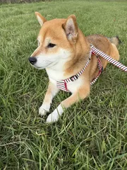 今朝の娘 朝晩風がひんやりで散歩が捗ると思いきや、拒否柴発動の娘お気に入りの空き地で一休み・・・動かない💦朝ごはんが遅くなっちゃうよ〜