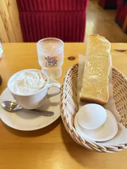 待たず座れた😊 今日はモーニング❣️久々のクリームコーヒー🥰 よく焼きトースト😋 卵🥚用意なかったらしくあとできました☆
