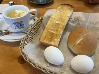 定番ゆで玉子🥚 モーニング☕今朝はたまご🥚づくし 手作りたまごドッグボリュームがあって美味しい😋