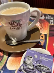 NEW 休日モーニング🌽 こんにちは。家族と休日モーニング😄賑わう店内☺️❣️大好きなコーンスープ🌽小倉あんとたまご、どちらにするか決められなかったので、どちらも食べました😁👍くるくる、ハート…🫣?昨日のげこちゃんの投稿で見た、🥄くるくるハートに挑戦してみましたが…難しいですね🫣アメリカンと…最近お気に入りのアメリカンと一緒
